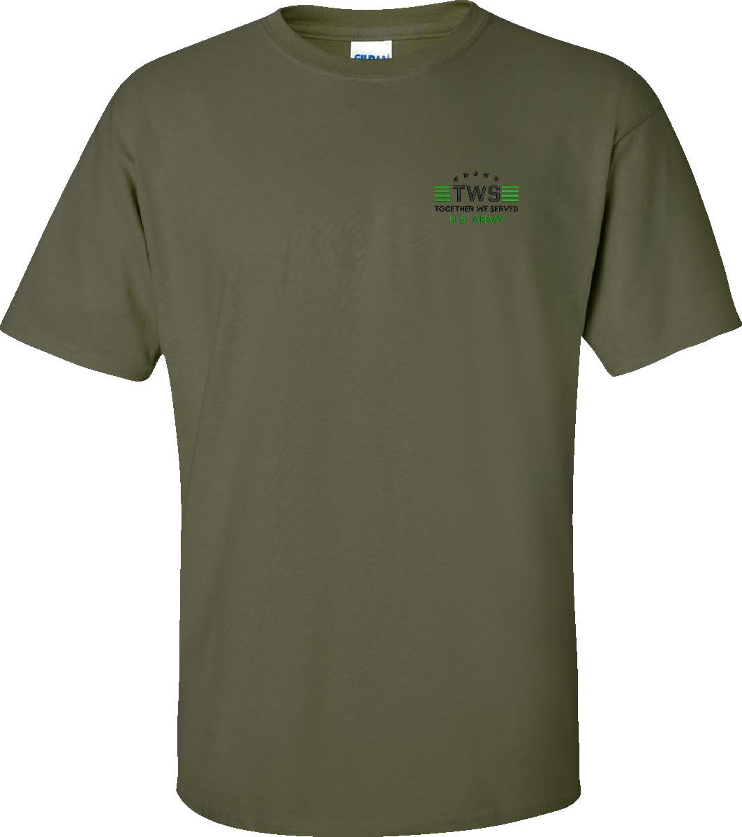 MilitaryBest is proud to offer Together We Served U.S. Army 100% cotton T-shirts. Each T-shirt is embroidered to order at our facilities in Scottsboro, AL by Americans with a passion for patriotism.
