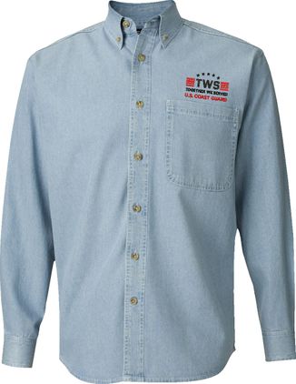 MilitaryBest is proud to offer Together We Served U.S. Coast Guard Denim Button Down shirts. Each shirt is embroidered to order at our facilities in Scottsboro, AL by Americans with a passion for patriotism.