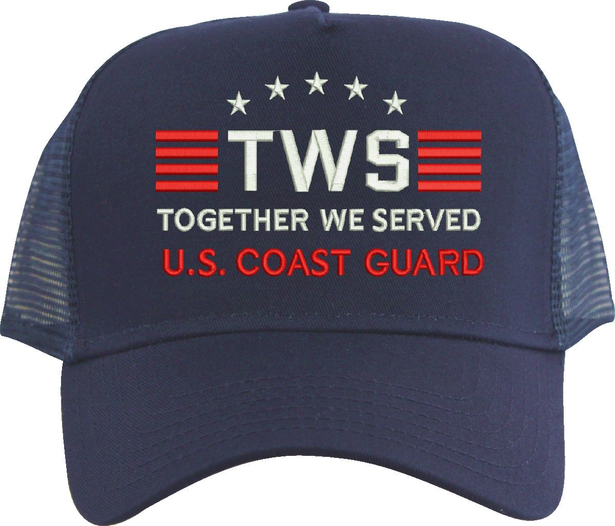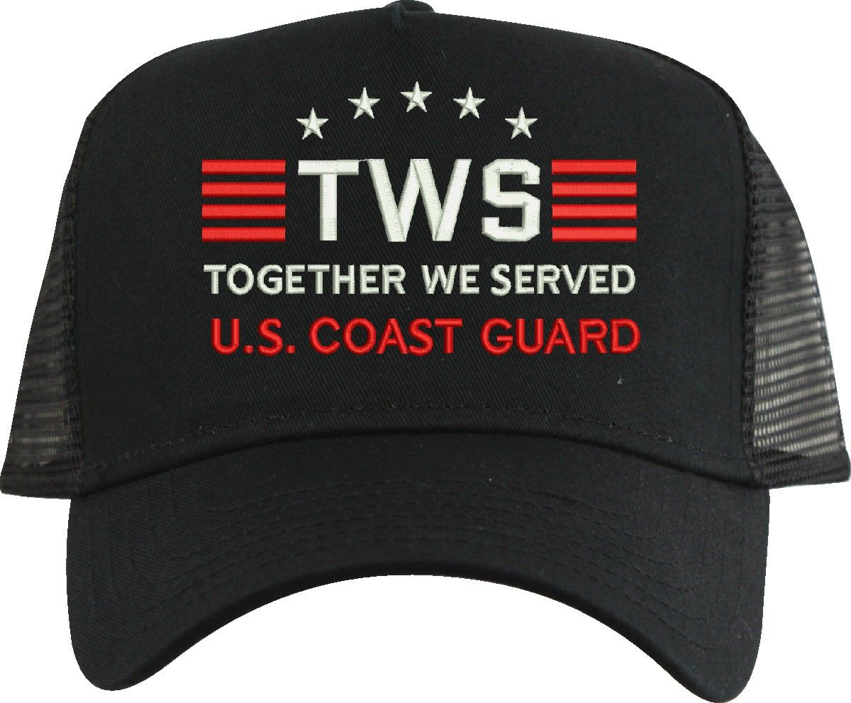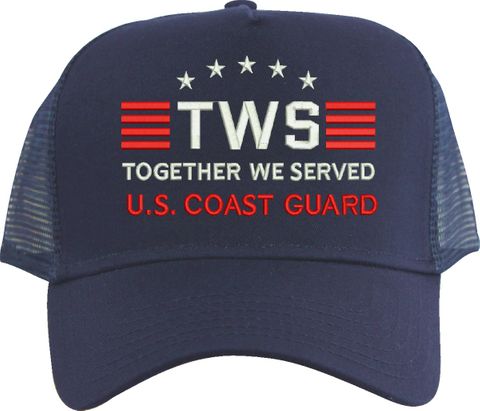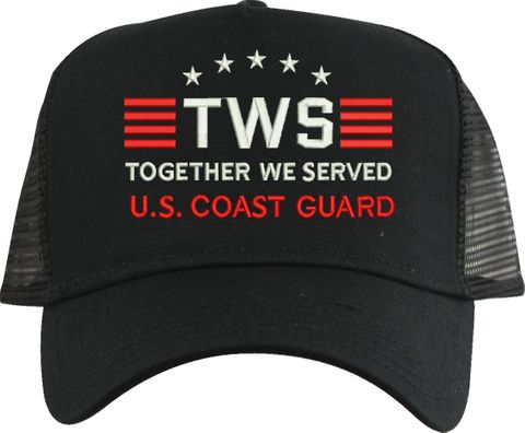MilitaryBest is proud to offer Together We Served U.S. Coast Guard mesh back caps for our United States military veterans. Each cap is embroidered to order at our facilities in Scottsboro, AL by Americans with a passion for patriotism! The mesh back is designed to let the air flow through and keep your head cool.