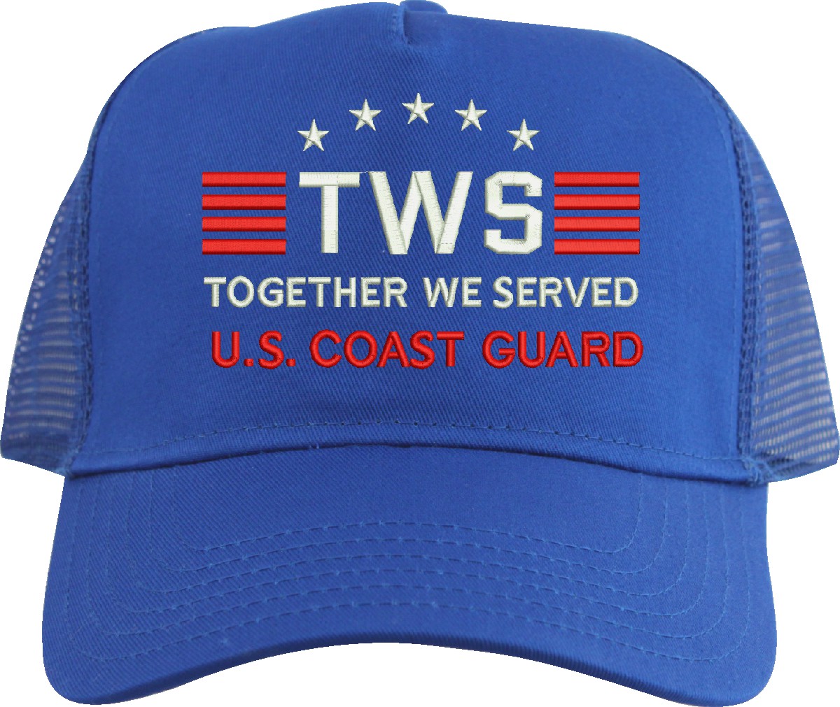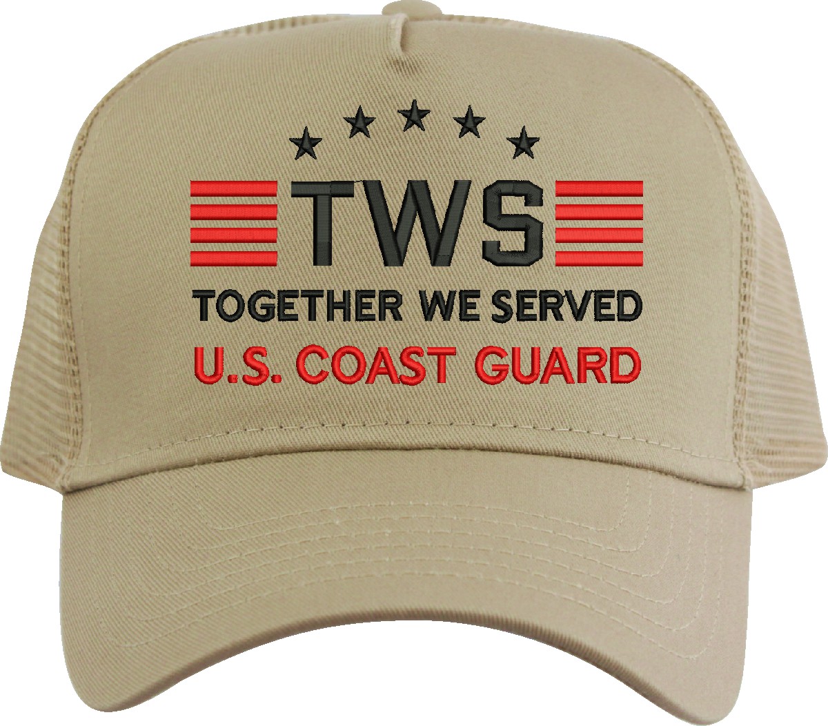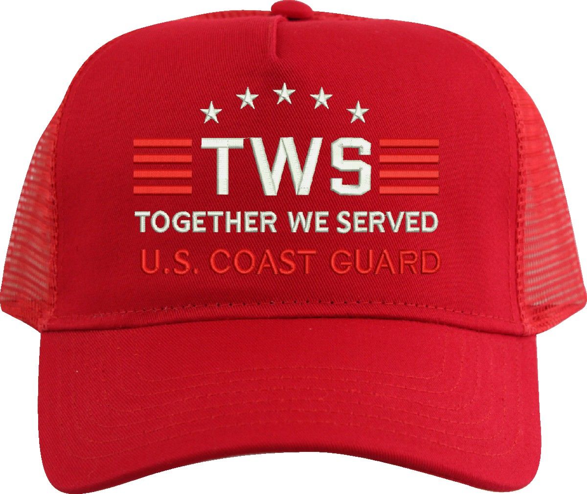 MilitaryBest is proud to offer Together We Served U.S. Coast Guard mesh back caps for our United States military veterans. Each cap is embroidered to order at our facilities in Scottsboro, AL by Americans with a passion for patriotism! The mesh back is designed to let the air flow through and keep your head cool.