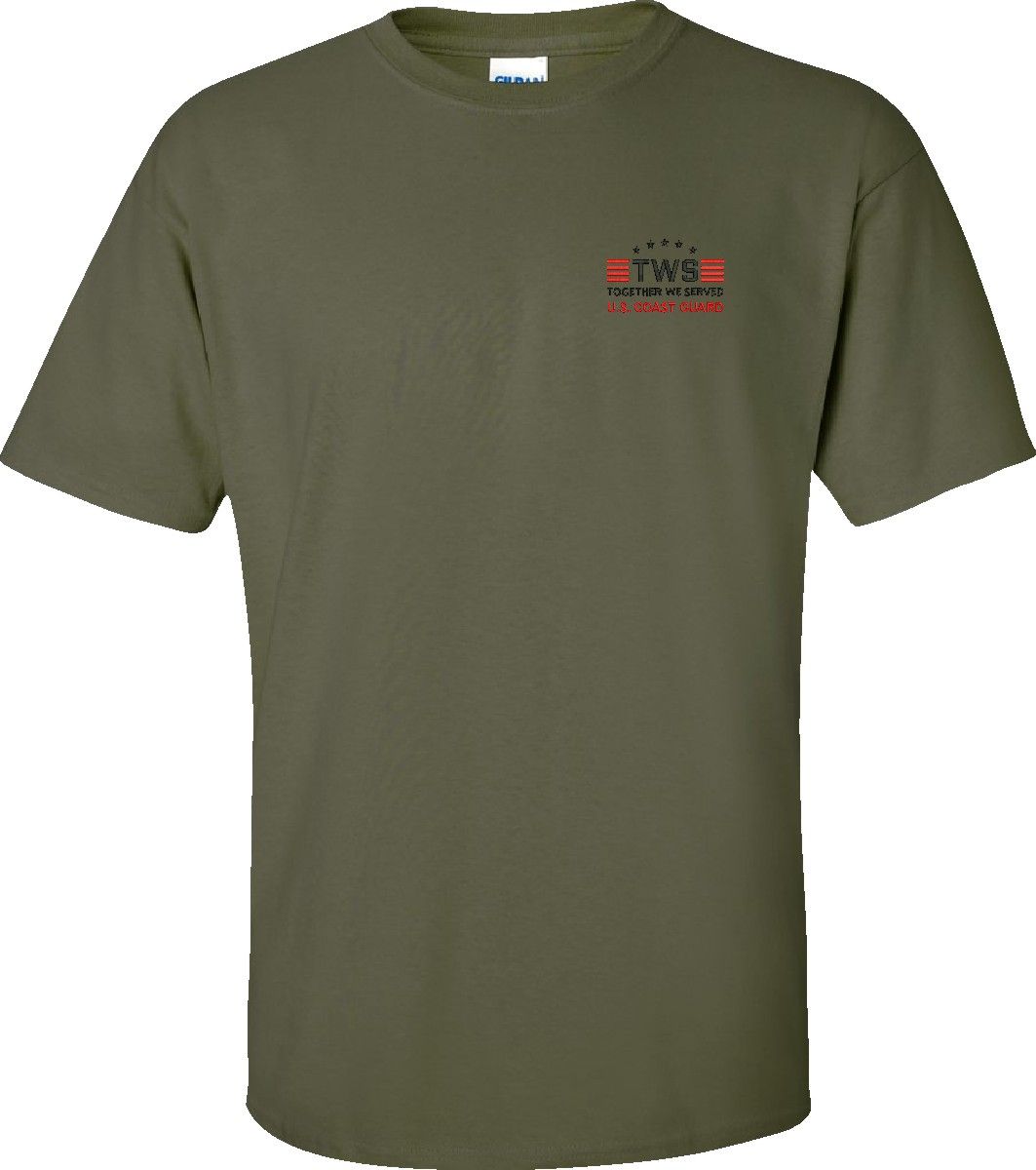 MilitaryBest is proud to offer Together We Served U.S. Coast Guard 100% cotton T-shirts. Each T-shirt is embroidered to order at our facilities in Scottsboro, AL by Americans with a passion for patriotism.