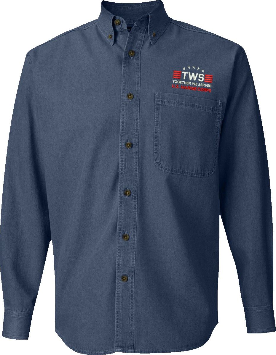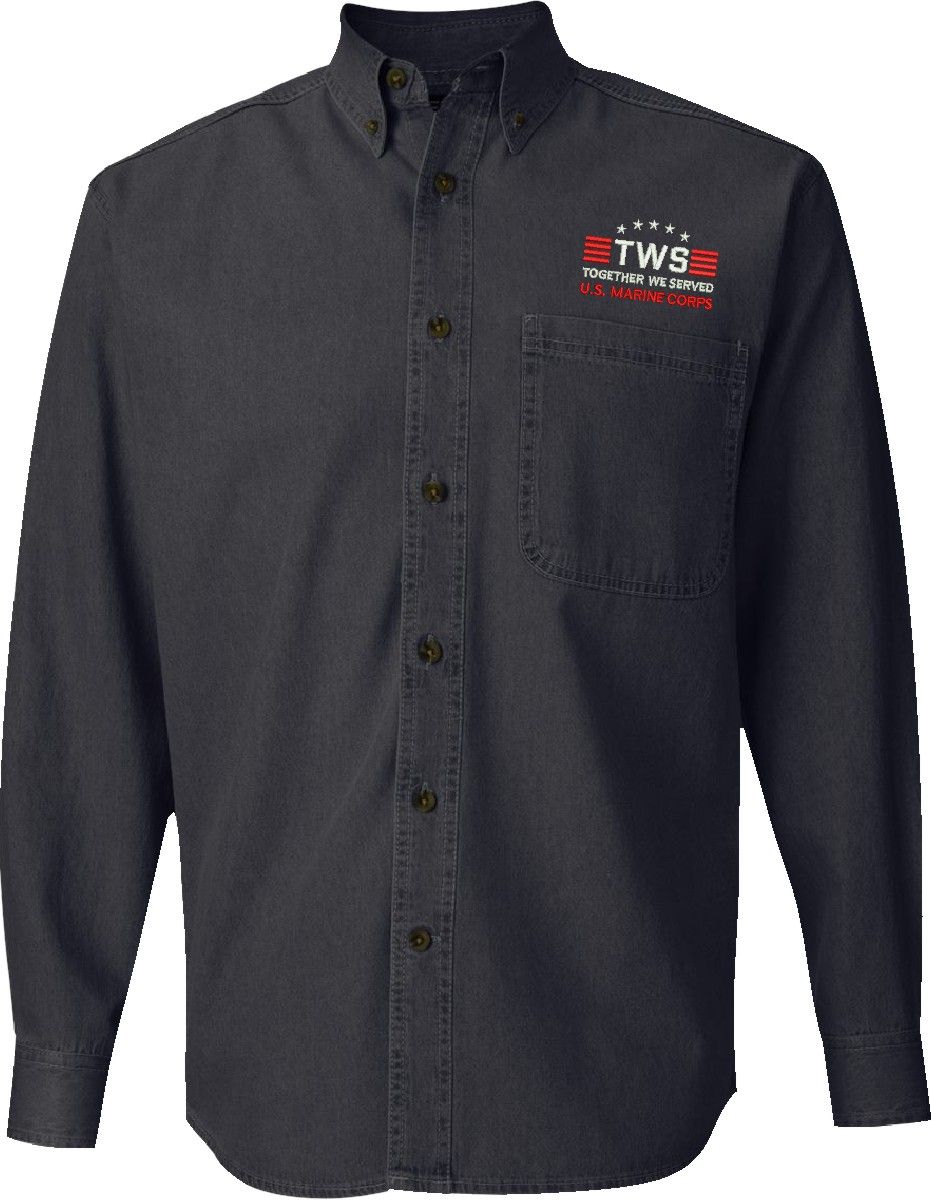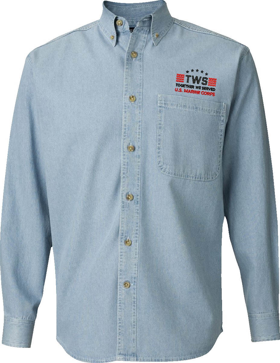 MilitaryBest is proud to offer Together We Served U.S. Marine Corps Denim Button Down shirts. Each shirt is embroidered to order at our facilities in Scottsboro, AL by Americans with a passion for patriotism.