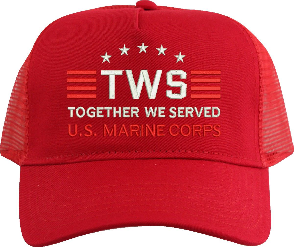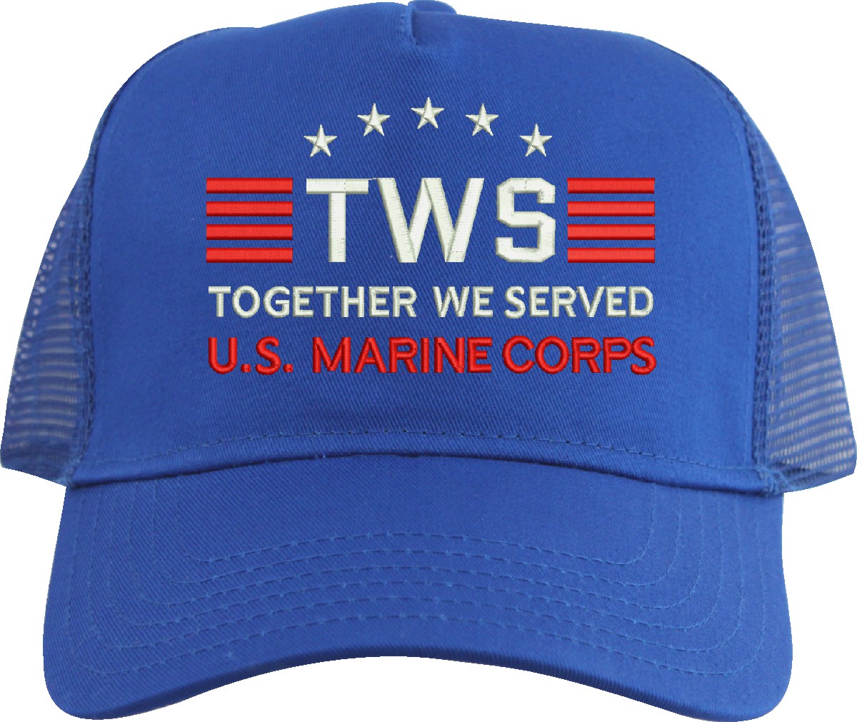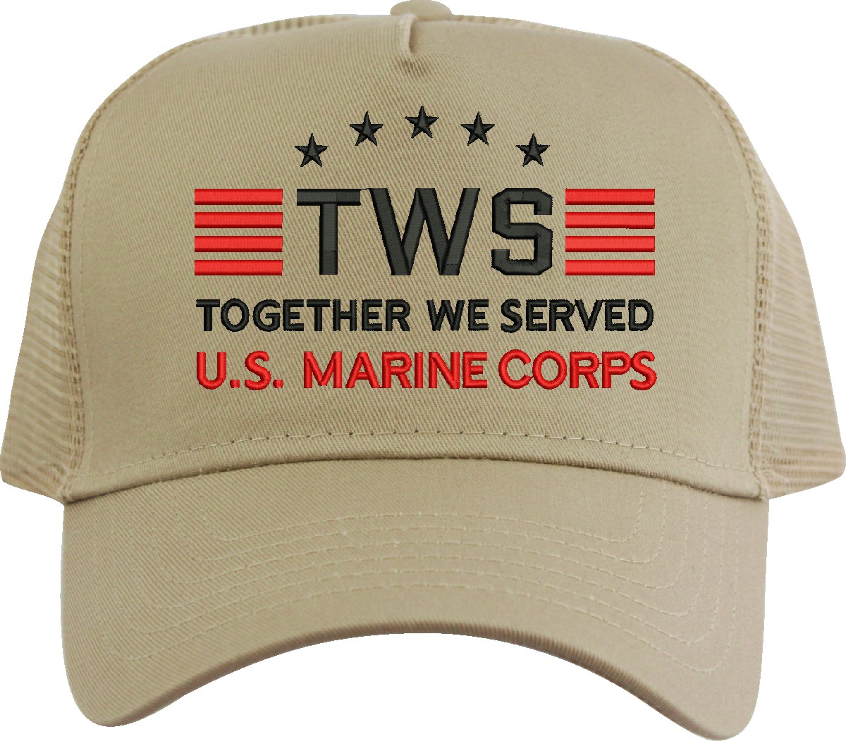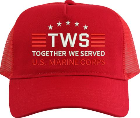 MilitaryBest is proud to offer Together We Served U.S. Marine Corps mesh back caps for our United States military veterans. Each cap is embroidered to order at our facilities in Scottsboro, AL by Americans with a passion for patriotism! The mesh back is designed to let the air flow through and keep your head cool.