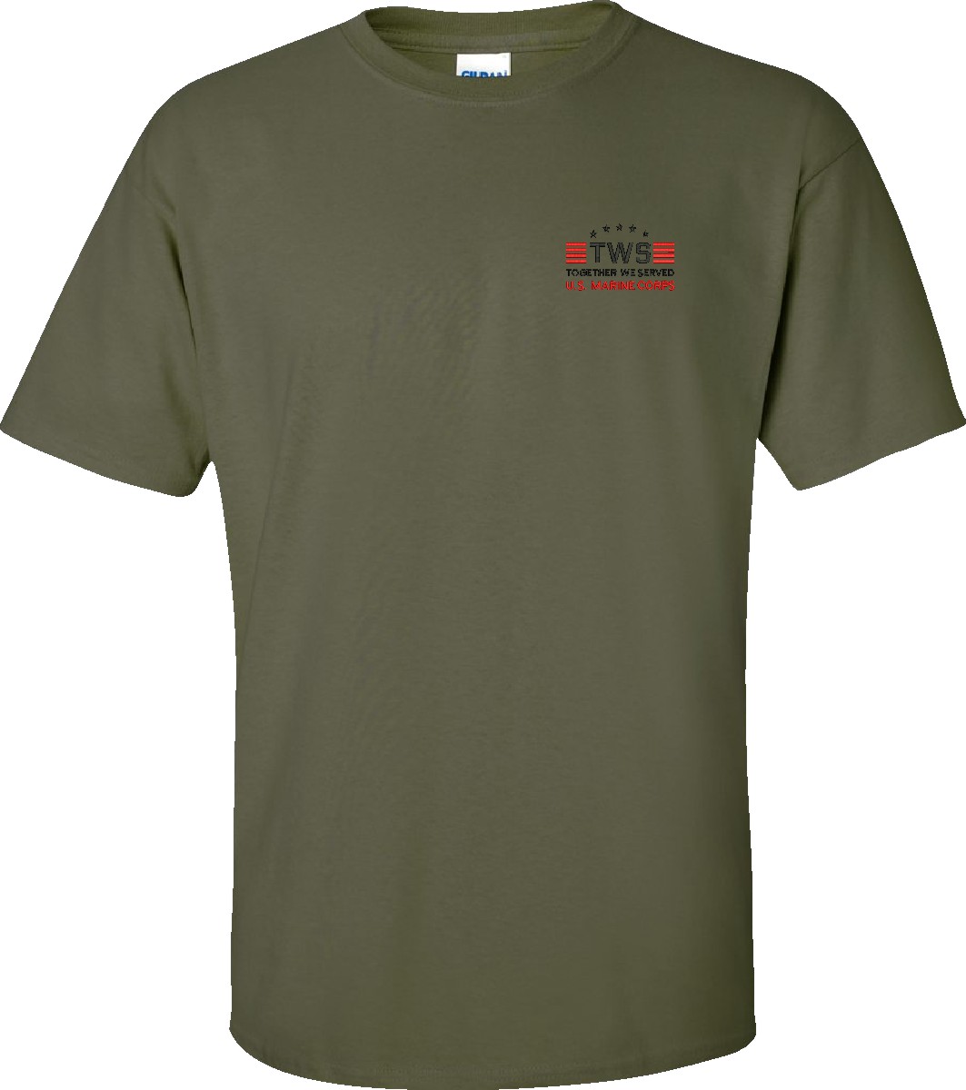 MilitaryBest is proud to offer Together We Served U.S. Marine Corps 100% cotton T-shirts. Each T-shirt is embroidered to order at our facilities in Scottsboro, AL by Americans with a passion for patriotism.