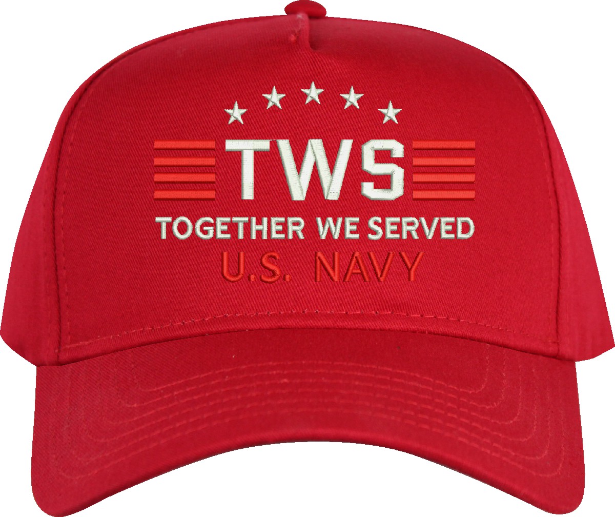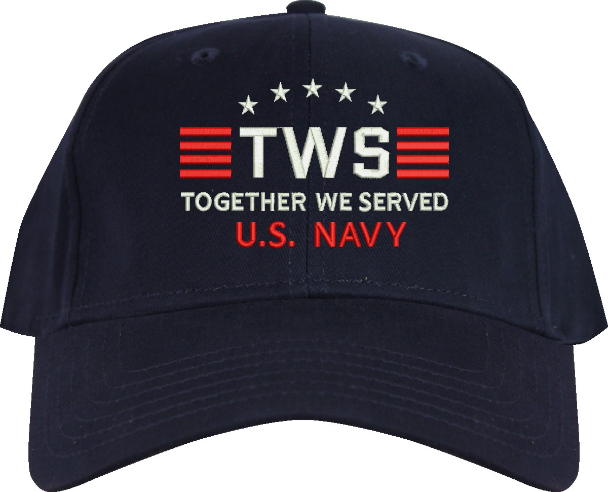 All Text on Custom Orders will be embroidered in ALL CAPITAL LETTERS.MilitaryBest is proud to offer Together We Served U.S. Navy imported cotton twill caps for our United States military veterans. Each cap is embroidered to order at our facilities in Scottsboro, AL by Americans with a passion for patriotism! You can personalize your cap with embroidered text on the back for an additional $7.