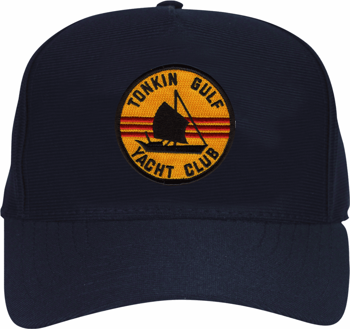 This Tonkin Gulf Yacht Club Patch Cap is emblematic, poly, dark under the visor, full back (not mesh), fully adjustable, and available in 5 panel high profile or 6 panel low profile styles. All our Military caps are fully guaranteed. These are the same ball caps found throughout the Military. This cap would make a wonderful addition to your collection or a great gift! Our Ballcaps are made in the U.S.A. We will be glad to include scrambled eggs, which is an embroidered gold oak leaf added to the brim of the cap. For caps ordered with custom embroidered personalized text please allow an additional 3 to 5 days production time. All custom back text will be embroidered in ALL CAPS. Caps with back text or eggs are non-returnable unless there is a material defect in the cap. If a style is not selected the cap will be made using a high profile style cap as pictured.
