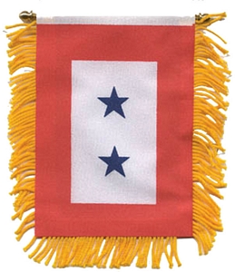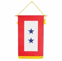 Our 4"X 5" Two Blue Star Service Banner is made of the highest quality material. It has a gold fringe around the border and a matching gold cord which can be used to hang the banner in a window or on a wall. This is same banner sold in Military Base Exchanges.