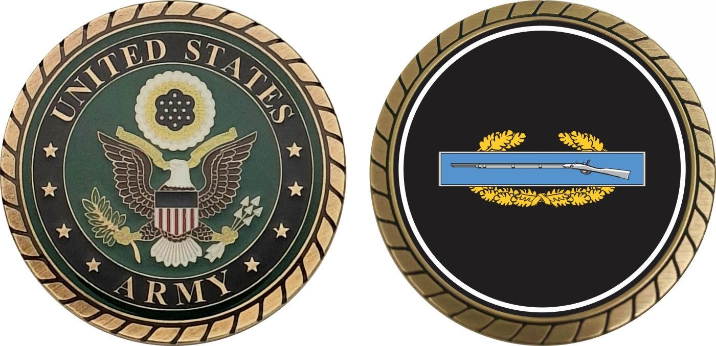 This 1 3/4” U.S. Army Master Combat Infantry Badge Challenge Coin is proudly offered by Militarybest. This Officially Licensed Army coin has beautiful enamel finish on one side and an organized crisp clean design on the opposite side.