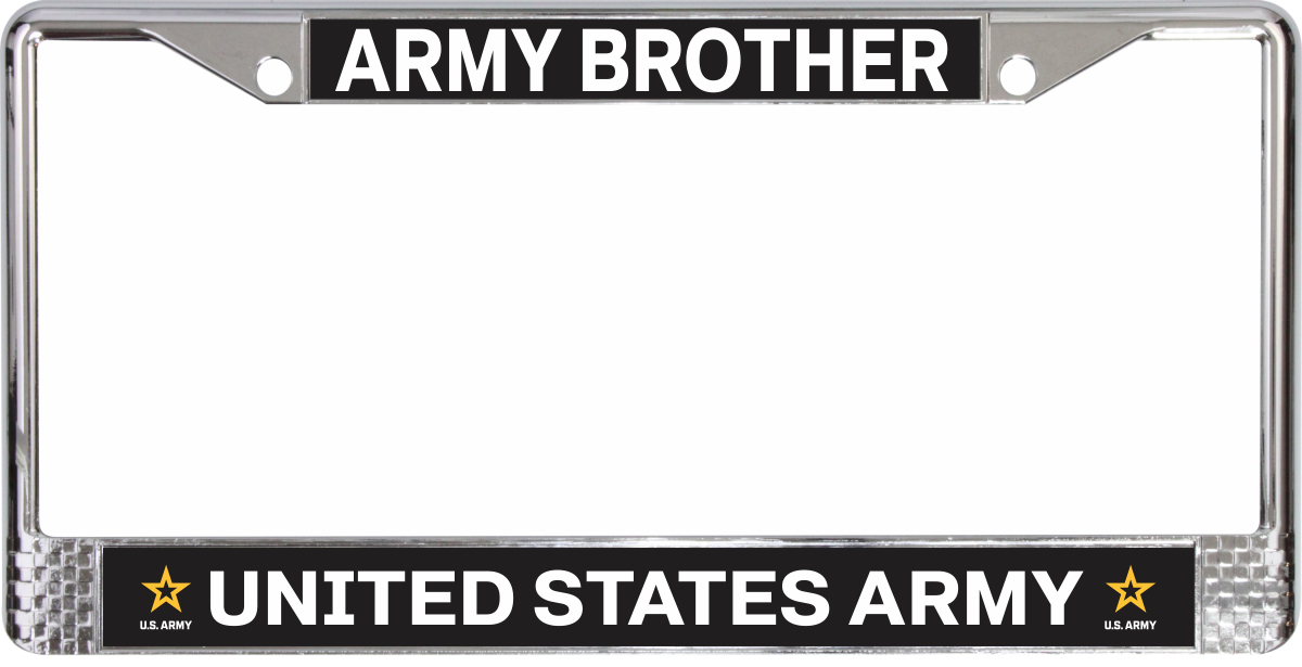 U.S. Army 'Brother' License Plate FrameThis U.S. Army 'Brother' License Plate Frame is made from the highest quality finished metal alloy. Each one is designed to provide years of use. Each is designed and produced in our facility in Scottsboro, Alabama.