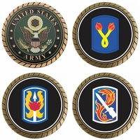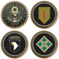 This U.S. Army Veteran Challenge Coin polished bronze with a diamond wave cut edge. Measuring 1 5/8" diameter each challenge coin has the look and feel of quality. Our Challenge Coins are proudly produced, under strict standards, by the nation's leading manufacturer of military products. Each challenge coin would make a great addition to your collection or a wonderful gift.The optional Felt Coin Case can only hold a coin measuring 1 5/8". The coin case has a blue felt exterior and red felt interior.