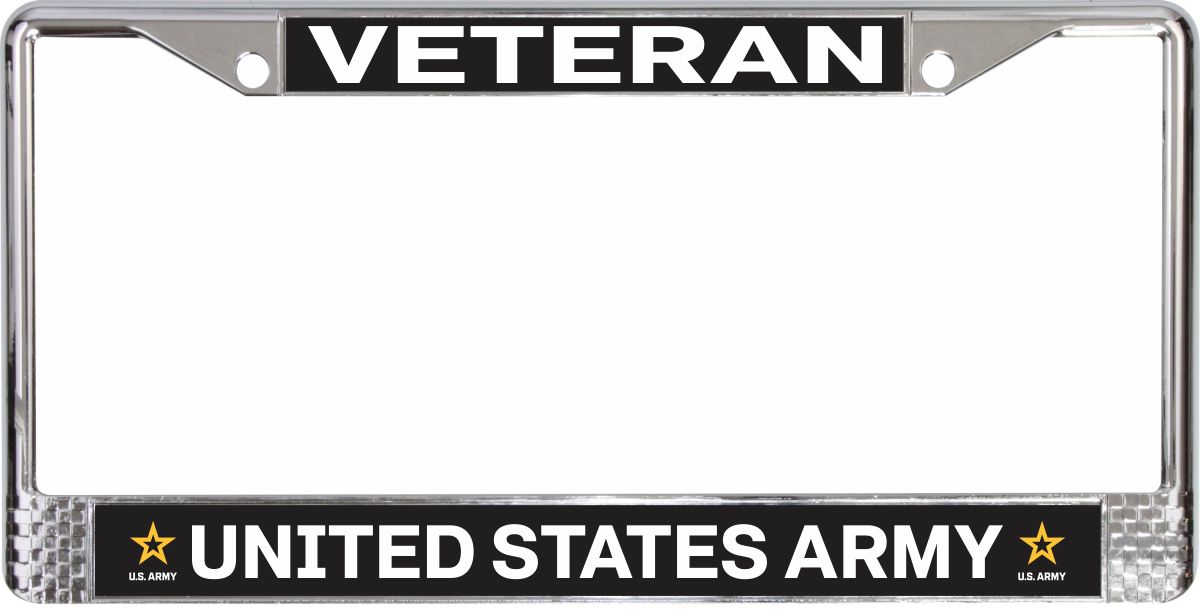 U.S. Army Veteran License Plate FrameThis U.S. Army Veteran License Plate Frame is made from the highest quality finished metal alloy. Each one is designed to provide years of use. Each is designed in our facility in Scottsboro, Alabama.