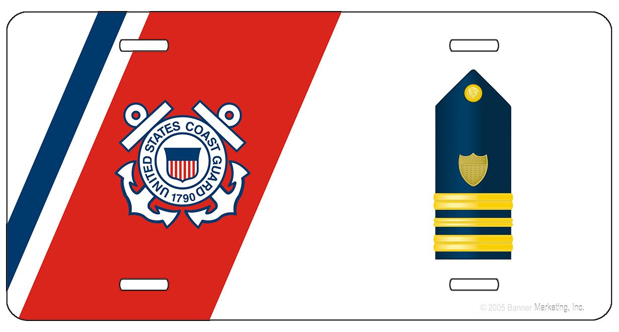 This U.S. Coast Guard Lieutenant Commander License Plate is made from heavy gauge aluminum and has a baked enamel finish to last for many years of use. Each plate measures 5 15/16" x 11 15/16". This license plate would make a wonderful addition to your collection or a great gift.