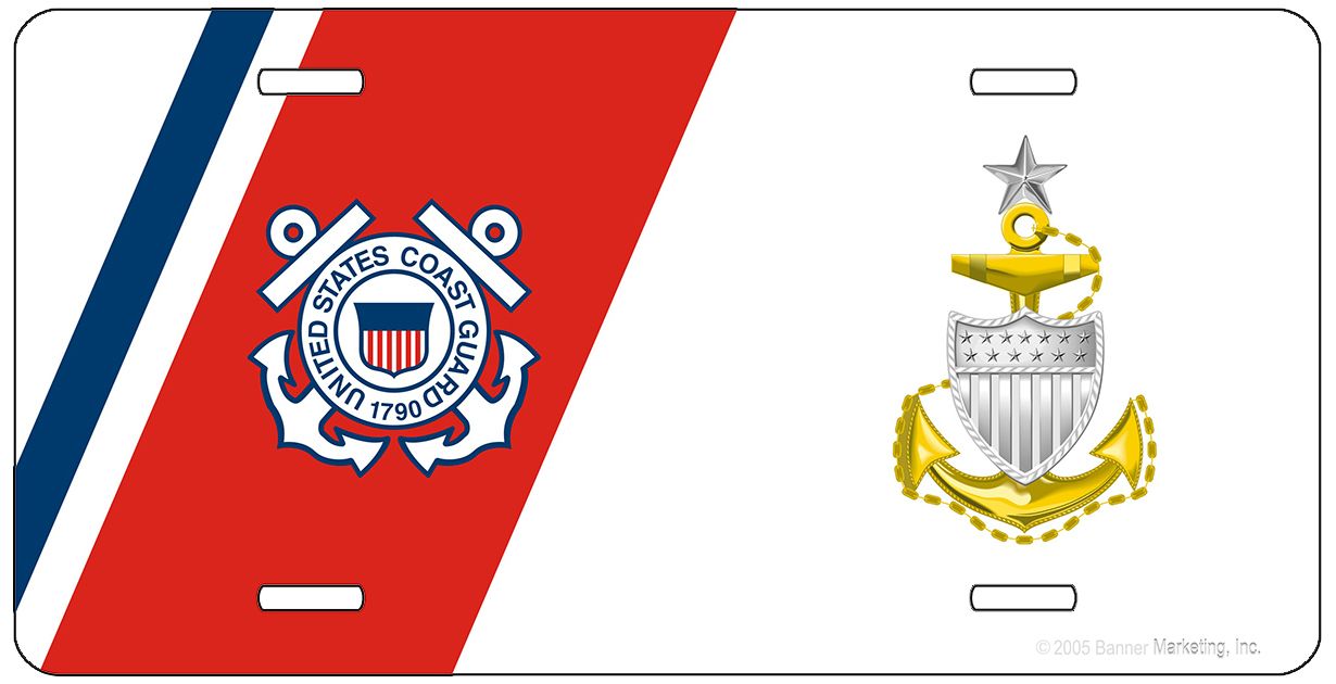 This U.S. Coast Guard Senior Chief Petty Officer License Plate is made from heavy gauge aluminum and has a baked enamel finish to last for many years of use. Each plate measures 5 15/16" x 11 15/16". This license plate would make a wonderful addition to your collection or a great gift.