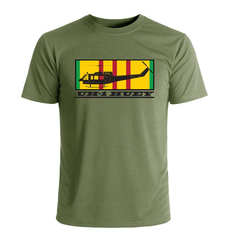 MilitaryBest is proud to offer this Vietnam Service Ribbon with Aircraft T-Shirt. Each design is offered in Black or Olive Drab Green (OD Green). This fine UH-1 Huey Vietnam T-Shirt is proudly printed in the USA. The quality of all of our Military products is guaranteed. Unless there is a defect in workmanship or material, these shirts are unreturnable. To all of our Vietnam Veterans WELCOME HOME!A percentage of the sale of each MilitaryBest item is forwarded to the licensing departments of each respective branch of service in support of the MWR (Morale, Welfare, & Recreation) program. These payments are made by either ALL4U LLC or the wholesaler from where the item originated. Our team thanks you for your service and your support of these programs.