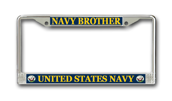 This U.S. Navy Brother License Plate Frame is made from the highest quality finished metal alloy. Each one is designed to provide years of use. Each is designed in our facility in Scottsboro, Alabama. Please check your state and local regulations for compatibility of these frames for use on your vehicle.