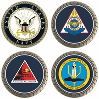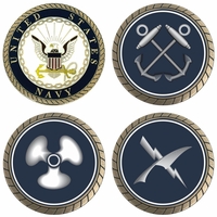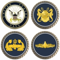 This United States Navy Challenge Coin polished bronze with a diamond wave cut edge. Measuring 1 5/8" diameter each challenge coin has the look and feel of quality. Our Challenge Coins are proudly produced, under strict standards, by the nation's leading manufacturer of military products. Each challenge coin would make a great addition to your collection or a wonderful gift.The optional Felt Coin Case can only hold a coin measuring 1 5/8". The coin case has a blue felt exterior and red felt interior.