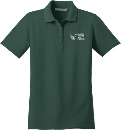MilitaryBest is proud to offer this United States Air Force Women's Stain-Release Polo. This polo is embroidered by our MilitaryBest team in Northeast Alabama. These polos are made with a stain-release finish for long-lasting wear, odor-fighting properties, and superior wrinkle and shrink resistance.Care Instructions: Machine Wash Cold With Like Colors. Do Not Use Fabric Softener. Do Not Bleach. Tumble Dry Low. Warm Iron If Necessary.