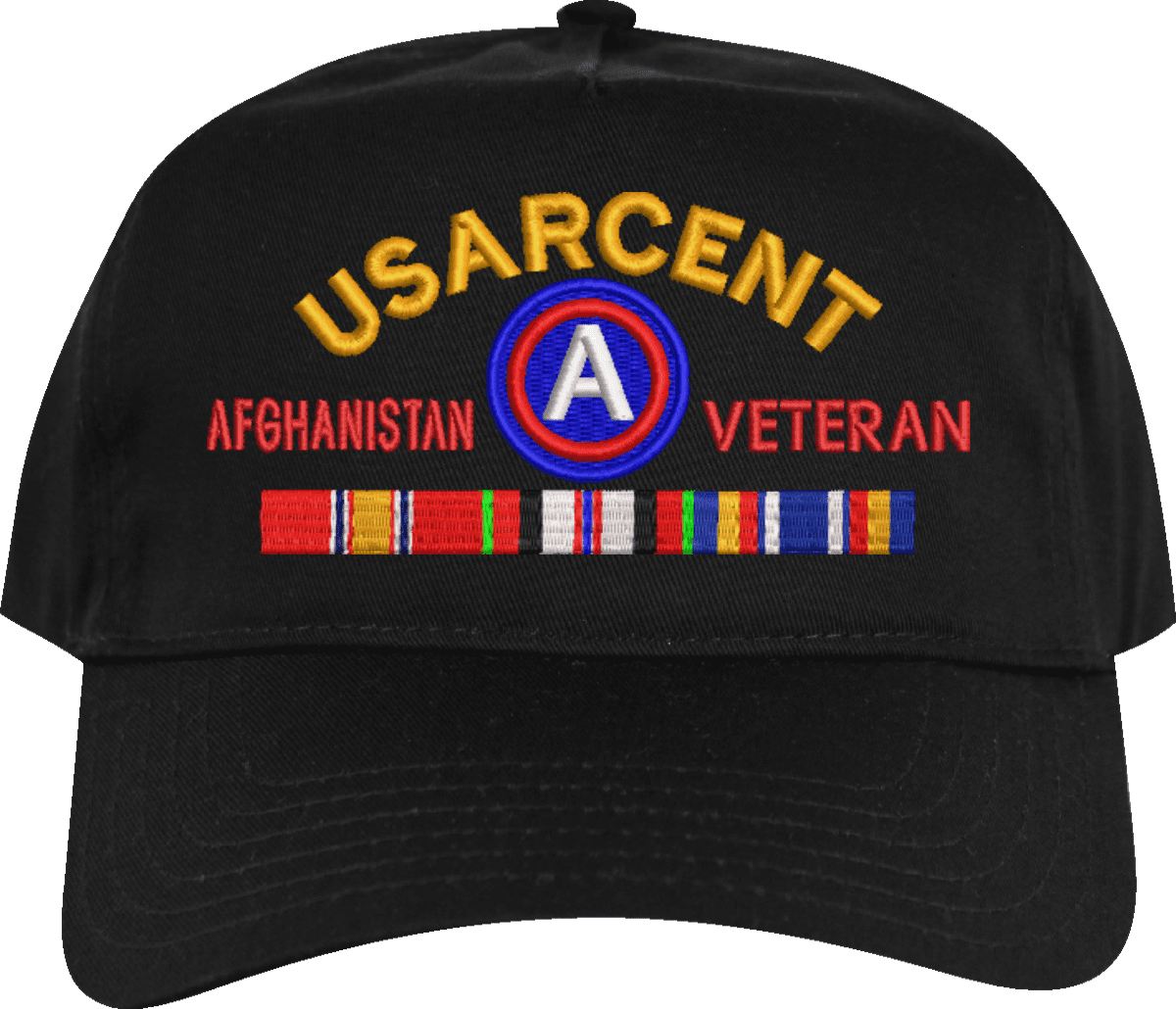 MilitaryBest is proud to offer this United States Army Central Afghanistan Veteran Embroidered Cap with Ribbons. This cap is available in a 5 panel high profile or 6 panel low profile styling. All our caps are made from top quality materials. This cap would make a wonderful addition to your collection or a great gift! All custom embroidery is done at our facility in Scottsboro, AL.
