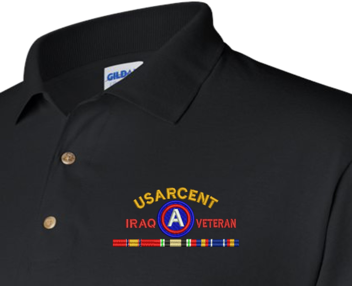 MilitaryBest is proud to offer this quality U.S. Army United States Army Central Iraq Veteran with Ribbons Embroidered Polo. Each Polo is available in either 100% Ringspun cotton pique or a 50/50 cotton/polyester blend. These quality Military Polos are proudly embroidered at our facilities in Scottsboro, AL. Support the Army MWR program by purchasing only from Licensed Vendors.