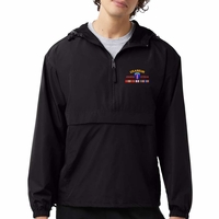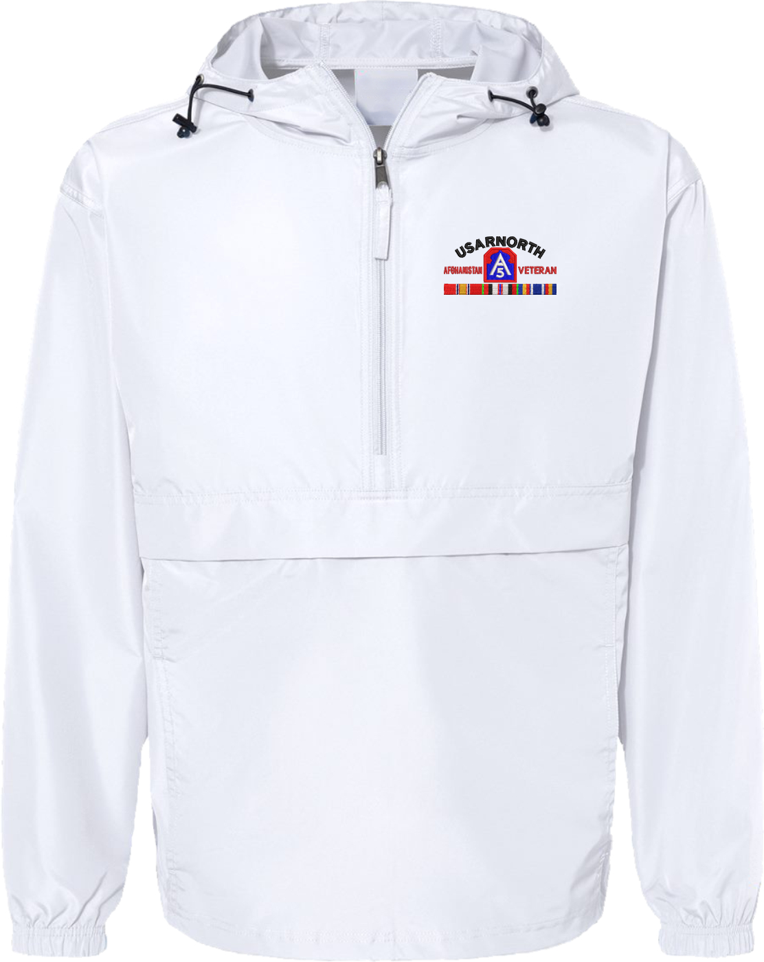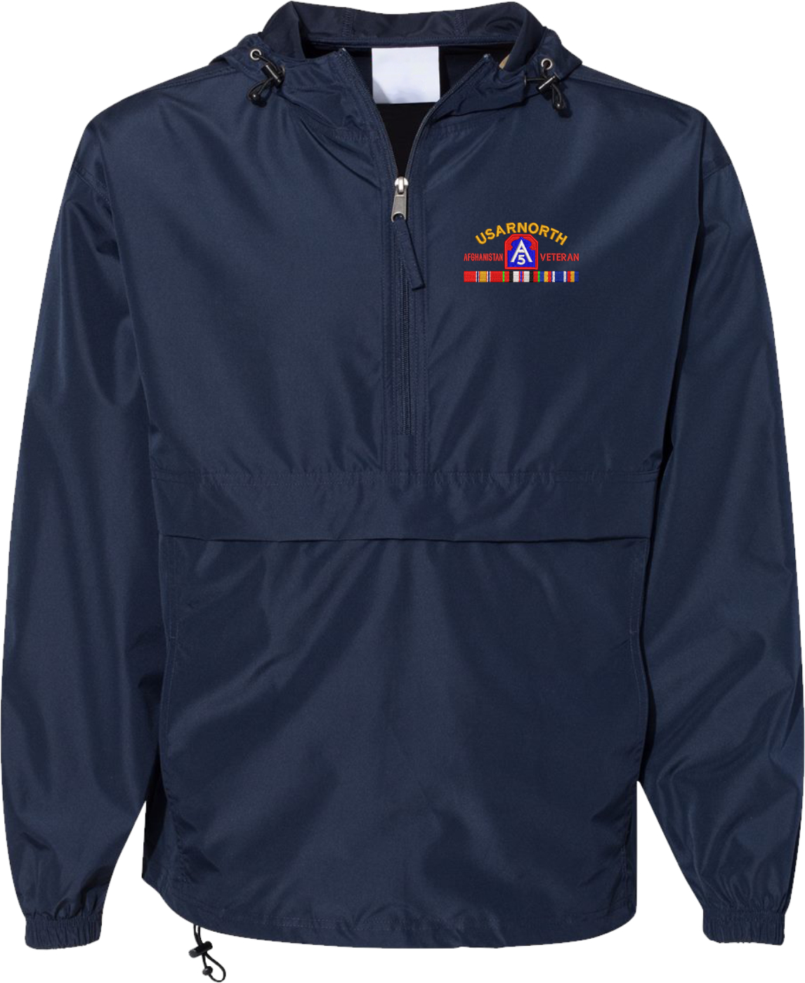 MilitaryBest is proud to offer this quality United States Army North Afghanistan Veteran with Ribbons Hooded Windbreaker. Also known as an Anorak Jacket, this windbreaker is designed to keep wind and water out. With a design embroidered over the left chest, this windbreaker is embroidered to order at our facilities in Scottsboro, AL.. This windbreaker can be packed into the mesh lined pouch pocket for a more portable method of storage.- 100% Polyester