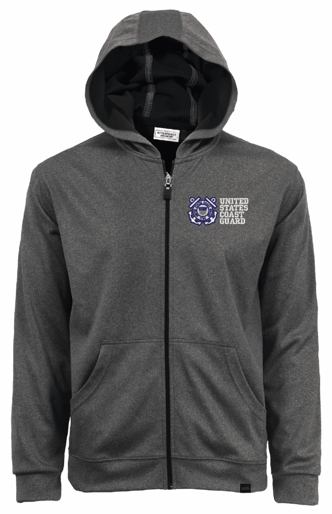 MilitaryBest proudly offers this top-quality United States Coast Guard Men's 100% Polyester Heather Grey Full-Zip Hoodie. We have proudly partnered with Authentically American to offer you this Made in the USA Hoodie. Water & wrinkle resistance make this zip hoodie the perfect layering piece from the golf course to you favorite travel destination.As with all MilitaryBest items, our designs are Officially Licensed. A percentage of the sale of each MilitaryBest item is forwarded to the licensing department in support of it's MWR (Morale, Welfare, & Recreation) program. These payments are made by either ALL4U LLC or the wholesaler from where the item originated. Our team thanks you for your service and your support of these programs.
