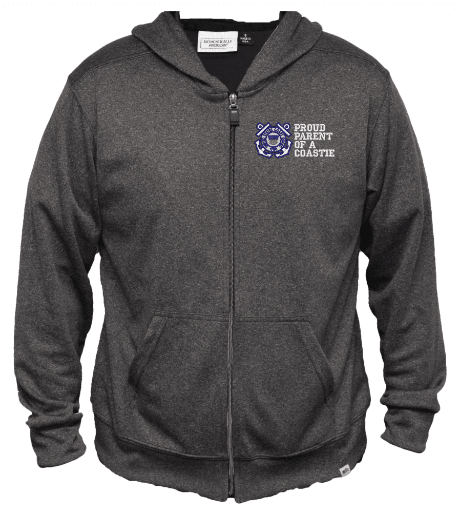 MilitaryBest proudly offers this top-quality Proud Parent of a Coastie Men's 100% Polyester Heather Grey Full-Zip Hoodie. We have proudly partnered with Authentically American to offer you this Made in the USA Hoodie. Water & wrinkle resistance make this zip hoodie the perfect layering piece from the golf course to you favorite travel destination.As with all MilitaryBest items, our designs are Officially Licensed. A percentage of the sale of each MilitaryBest item is forwarded to the licensing department in support of it's MWR (Morale, Welfare, & Recreation) program. These payments are made by either ALL4U LLC or the wholesaler from where the item originated. Our team thanks you for your service and your support of these programs.