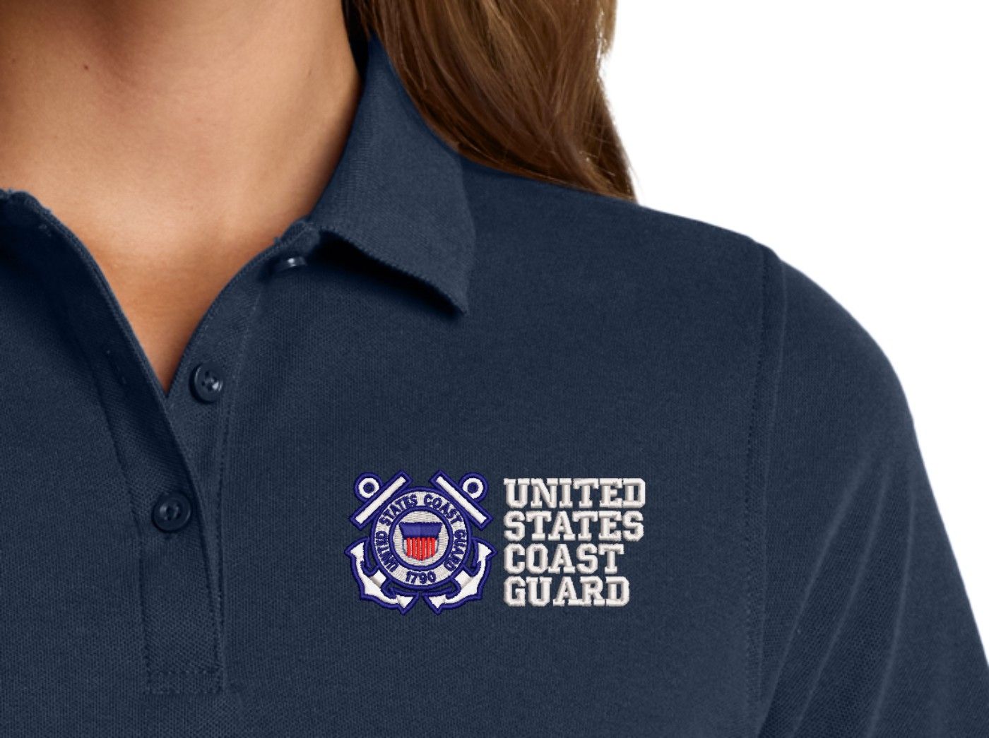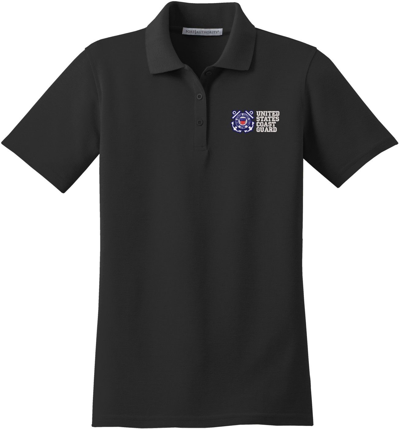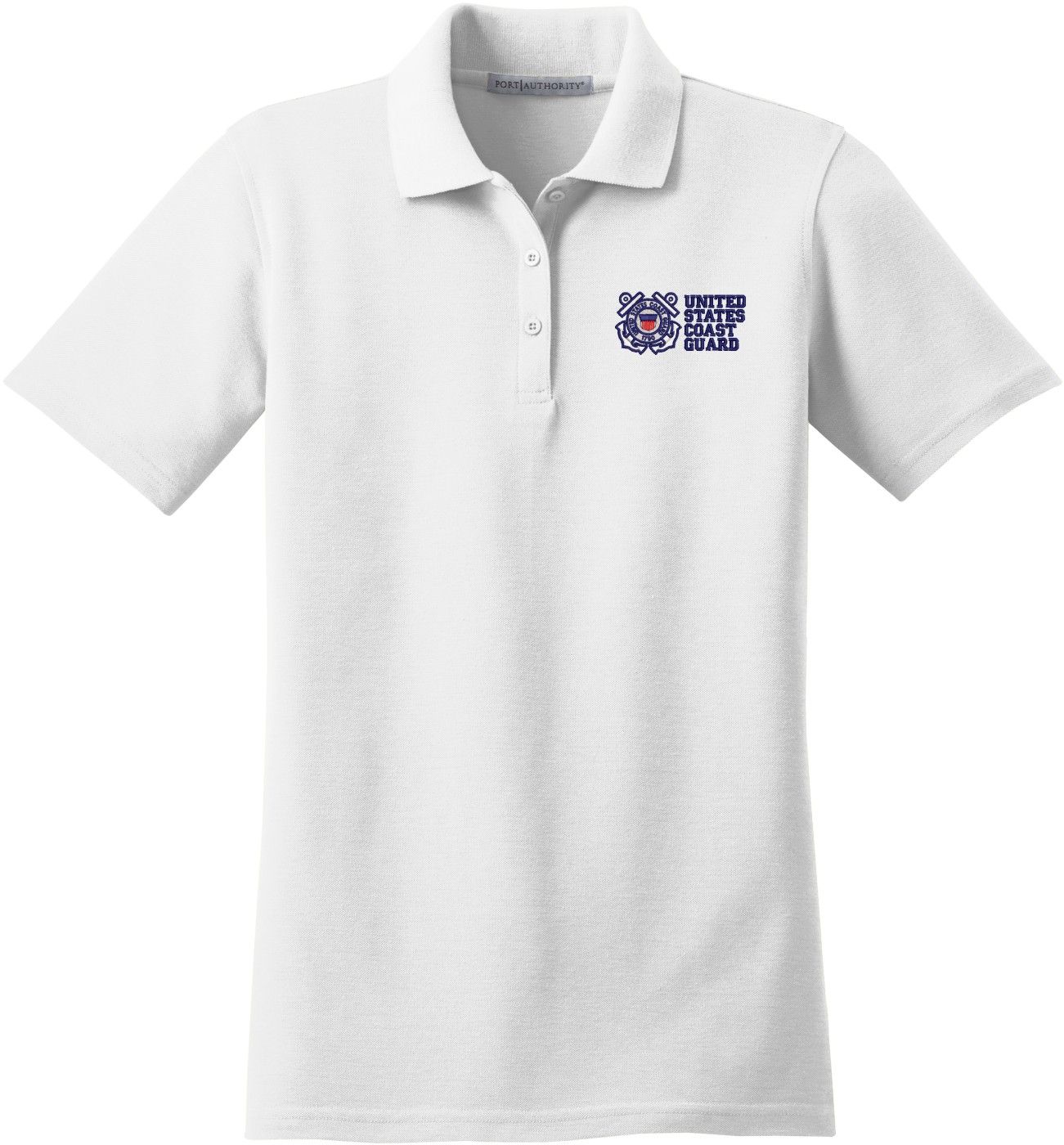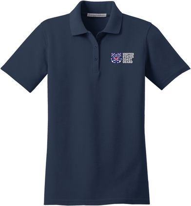 MilitaryBest is proud to offer this United States Coast Guard Women's Stain-Release Polo. This polo is embroidered by our MilitaryBest team in Northeast Alabama. These polos are made with a stain-release finish for long-lasting wear, odor-fighting properties, and superior wrinkle and shrink resistance.Care Instructions: Machine Wash Cold With Like Colors. Do Not Use Fabric Softener. Do Not Bleach. Tumble Dry Low. Warm Iron If Necessary.