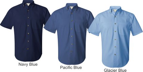 • 4.5 oz., 60/40 cotton/polyester twill • Button-down collar with woodtone buttons • Double-needle stitching throughout • Felled seams • Left chest pocket, two-ply back yoke • Back box pleat