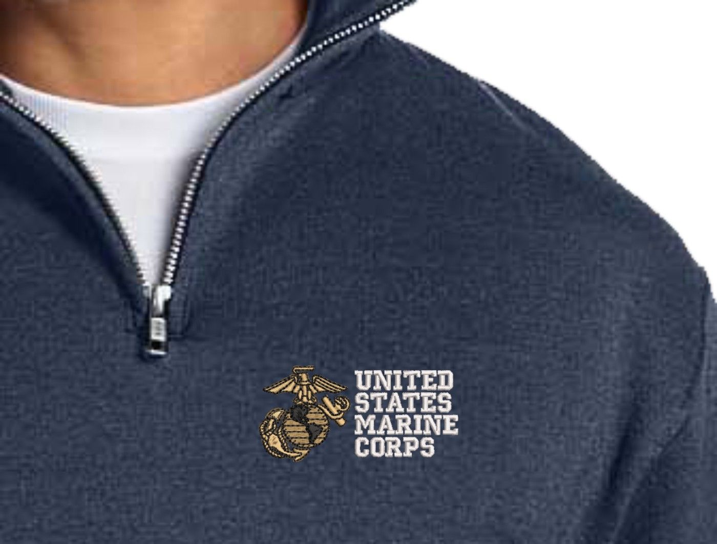 MilitaryBest is proud to offer this United States Marine Corps Embroidered Quarter-Zip Pullover. This quality shirt is embroidered by our MilitaryBest team in Northeast Alabama.PRODUCT FEATURES