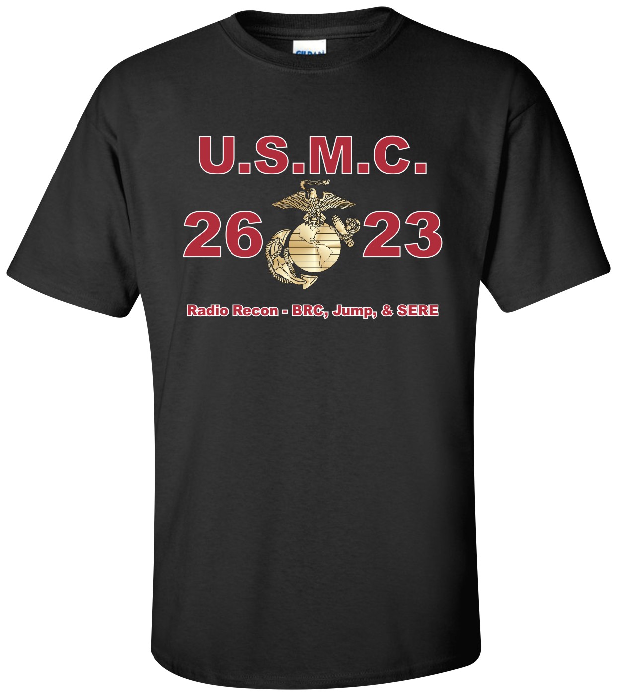 Due to disruptions in supply chains, this design will be embroidered on a Champion, Gildan, Jerzees or comparable brand.Proudly display your military occupational specialty with our top quality United States Marine Corps MOS 2623 Radio Recon - BRC, Jump, & SERE t-shirts, sweatshirts, and hoodies. These fine U.S.M.C. apparel items will make you the envy of your veteran buddies, or will make a fine gift! Our United States Marine Corps MOS 2623 Radio Recon - BRC, Jump, & SERE Apparel shirts are proudly printed in the USA!