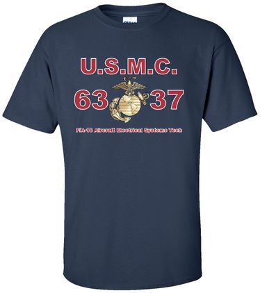 Due to disruptions in supply chains, this design will be embroidered on a Champion, Gildan, Jerzees or comparable brand.Proudly display your military occupational specialty with our top quality United States Marine Corps MOS 6337 F/A-18 Aircraft Electrical Systems Tech t-shirts, sweatshirts, and hoodies. These fine U.S.M.C. apparel items will make you the envy of your veteran buddies, or will make a fine gift! Our United States Marine Corps MOS 6337 F/A-18 Aircraft Electrical Systems Tech Apparel shirts are proudly printed in the USA!