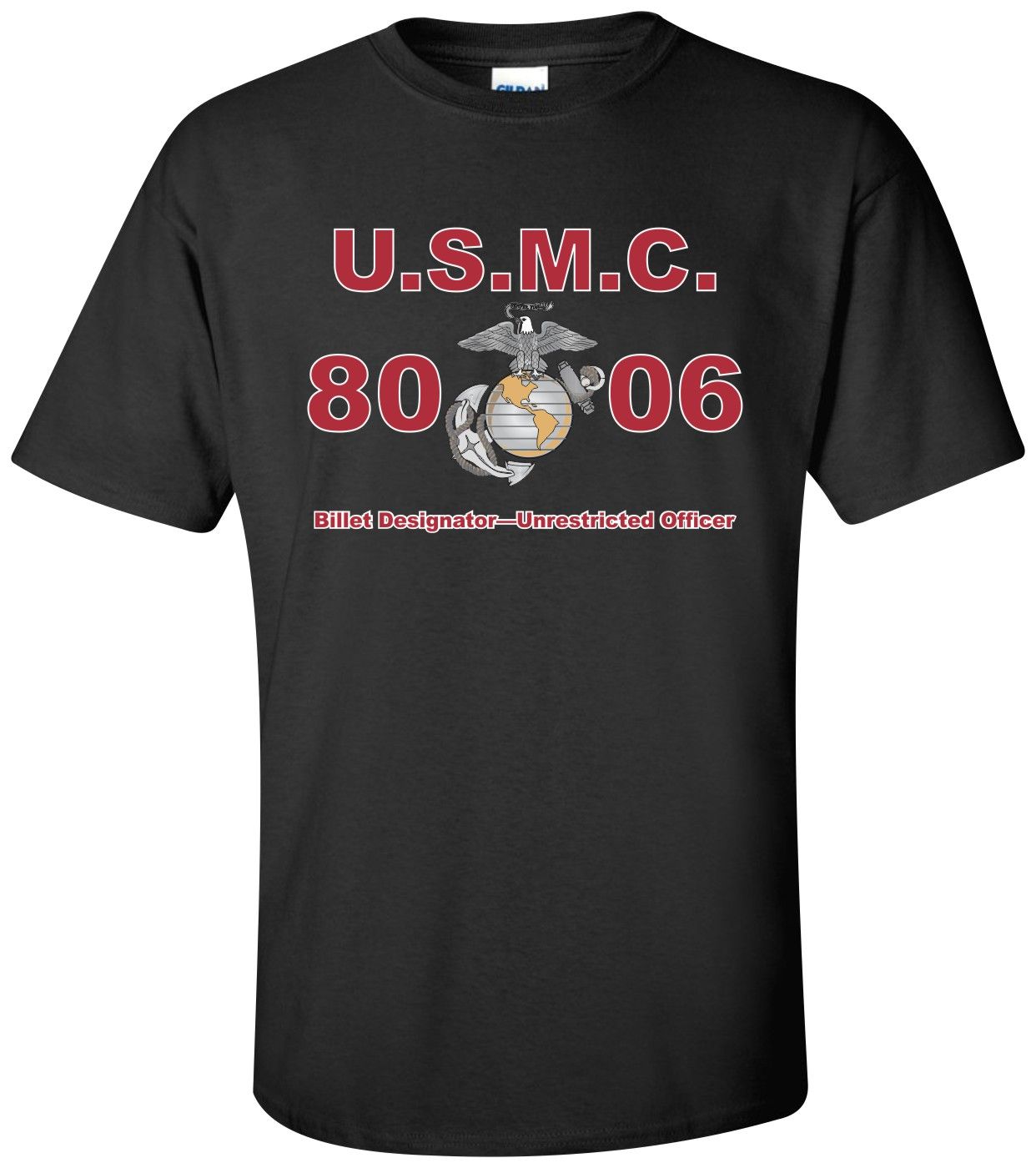 Due to disruptions in supply chains, this design will be embroidered on a Champion, Gildan, Jerzees or comparable brand.Proudly display your military occupational specialty with our top quality United States Marine Corps MOS 8006 Billet Designator—Unrestricted Officer t-shirts, sweatshirts, and hoodies. These fine U.S.M.C. apparel items will make you the envy of your veteran buddies, or will make a fine gift! Our United States Marine Corps MOS 8006 Billet Designator—Unrestricted Officer Apparel shirts are proudly printed in the USA!