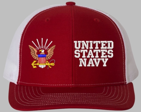 MilitaryBest is proud to offer this United States Navy Mesh Back Cap. The design of this U.S. Navy Cap is crisp, clean, and sure to be loved by people of all ages! Select above from our many cap colors. This United States Navy Mesh Back Cap is crafted by our skilled embroidery technicians at our facilities in Scottsboro, AL. As with all MilitaryBest items, your satisfaction is guaranteed!Caps ordered with custom embroidered personalized back text require an additional 2 to 3 days production time. All custom back text will be embroidered in ALL CAPITAL LETTERS. Caps personalized with back text are non-returnable unless there is a material defect in the cap.