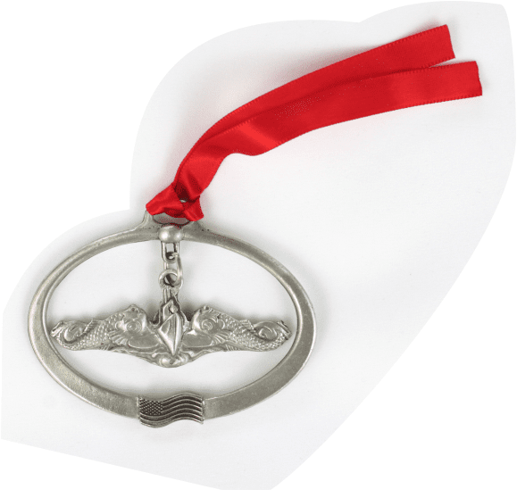 We are proud to offer this United States Navy Submarine Service Dolphins Christmas Ornament made by Sparta Pewter. Each pewter ornament is quality guaranteed.