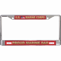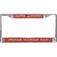 United States Proud Marine Mom License Plate FrameThis United States Proud Marine Mom License Plate Frame is made from the highest quality finished metal alloy. Each one is designed to provide years of use. Each is designed in our facility in Scottsboro, Alabama.