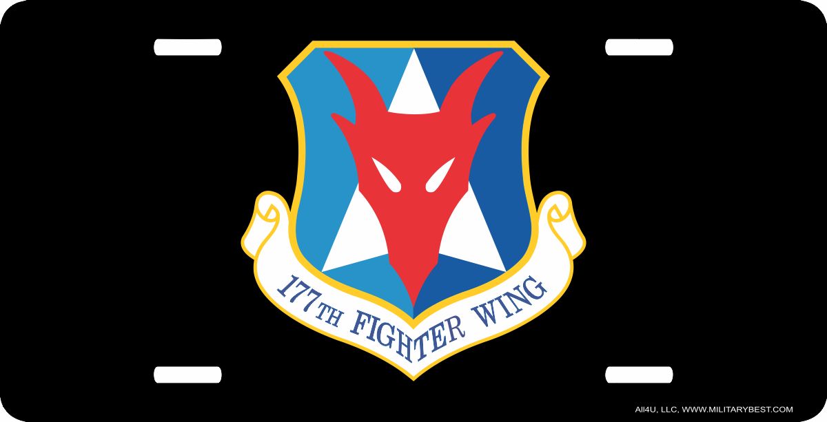 This U.S. Air Force 177th Fighter Wing License Plate is made from heavy gauge aluminum and has a baked enamel finish to last for many years of use. Each plate measures 5 15/16" x 11 15/16". This license plate would make a wonderful addition to your collection or a great gift.