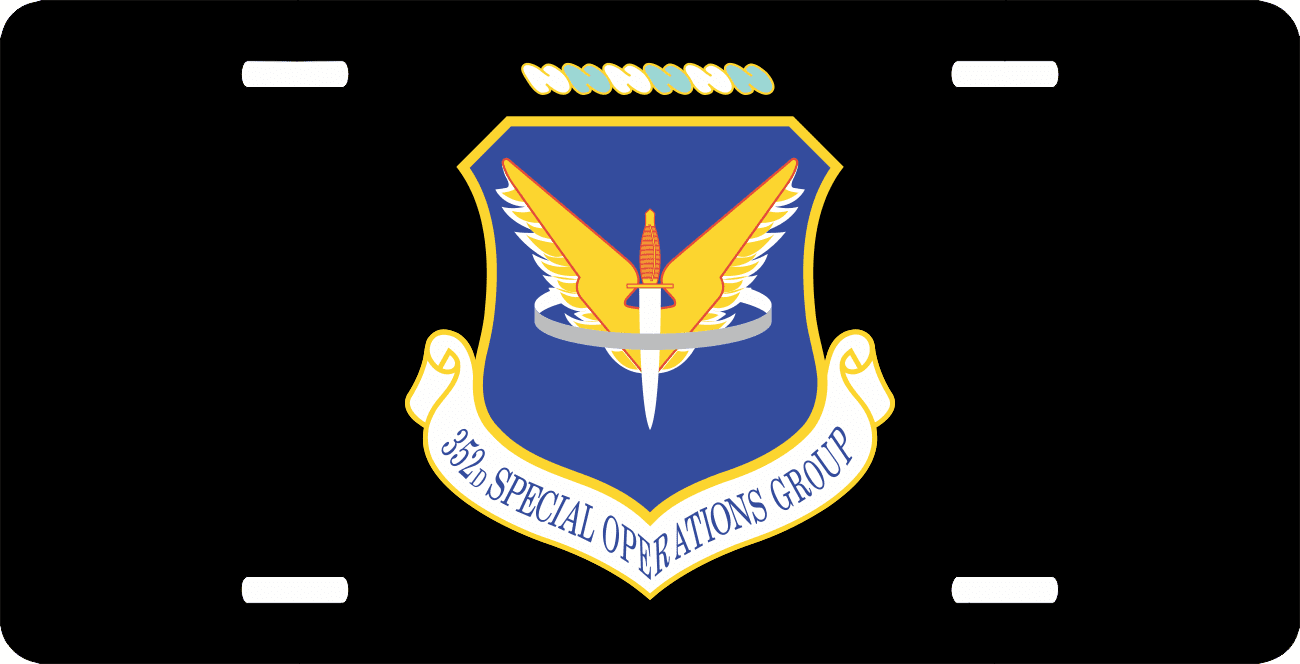 This U.S. Air Force 352nd Special Operations Group License Plate is made from heavy gauge aluminum and has a baked enamel finish to last for many years of use. Each plate measures 5 15/16" x 11 15/16". This license plate would make a wonderful addition to your collection or a great gift.