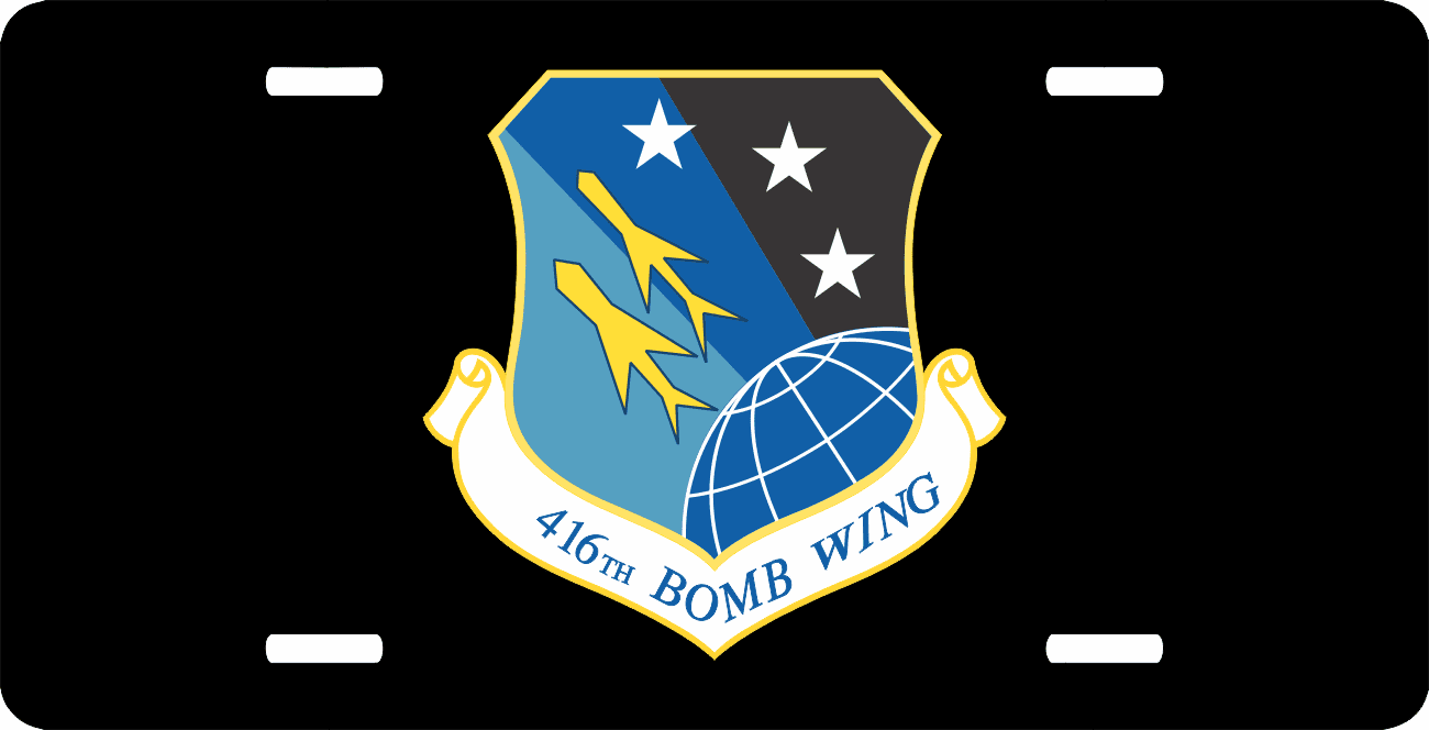 This U.S. Air Force 416th Bomb Wing License Plate is made from heavy gauge aluminum and has a baked enamel finish to last for many years of use. Each plate measures 5 15/16" x 11 15/16". This license plate would make a wonderful addition to your collection or a great gift.