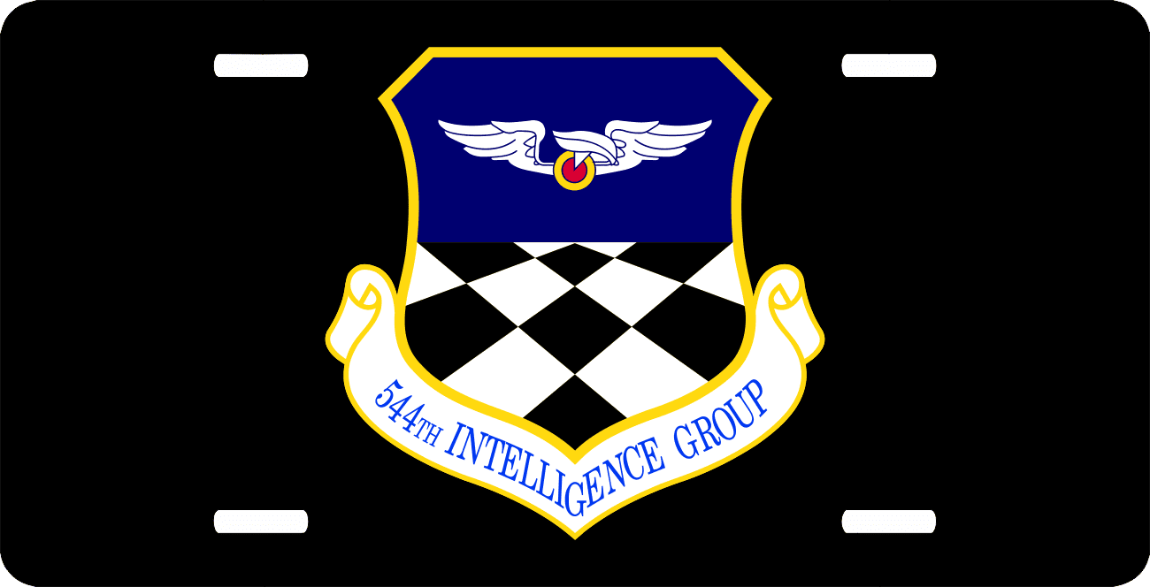 This U.S. Air Force 544th Intelligence Group License Plate is made from heavy gauge aluminum and has a baked enamel finish to last for many years of use. Each plate measures 5 15/16" x 11 15/16". This license plate would make a wonderful addition to your collection or a great gift.