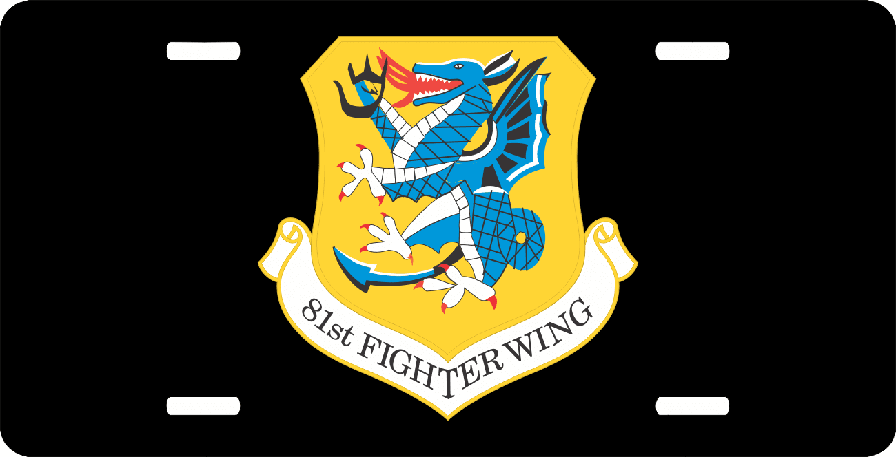 This U.S. Air Force 81st Fighter Wing License Plate is made from heavy gauge aluminum and has a baked enamel finish to last for many years of use. Each plate measures 5 15/16" x 11 15/16". This license plate would make a wonderful addition to your collection or a great gift.