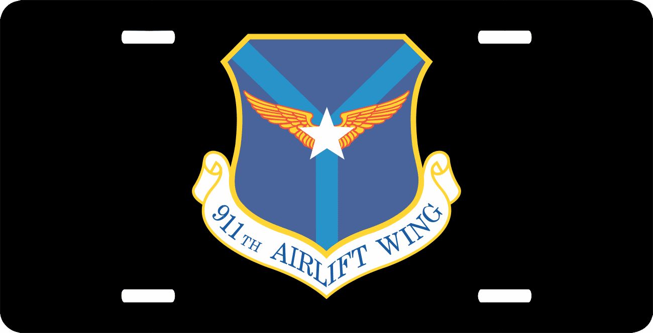 This U.S. Air Force 911th Airlift Wing License Plate is made from heavy gauge aluminum and has a baked enamel finish to last for many years of use. Each plate measures 5 15/16" x 11 15/16". This license plate would make a wonderful addition to your collection or a great gift.