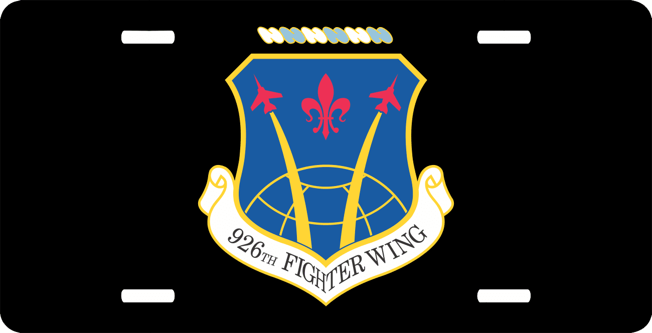 This U.S. Air Force 926th Fighter Wing License Plate is made from heavy gauge aluminum and has a baked enamel finish to last for many years of use. Each plate measures 5 15/16" x 11 15/16". This license plate would make a wonderful addition to your collection or a great gift.