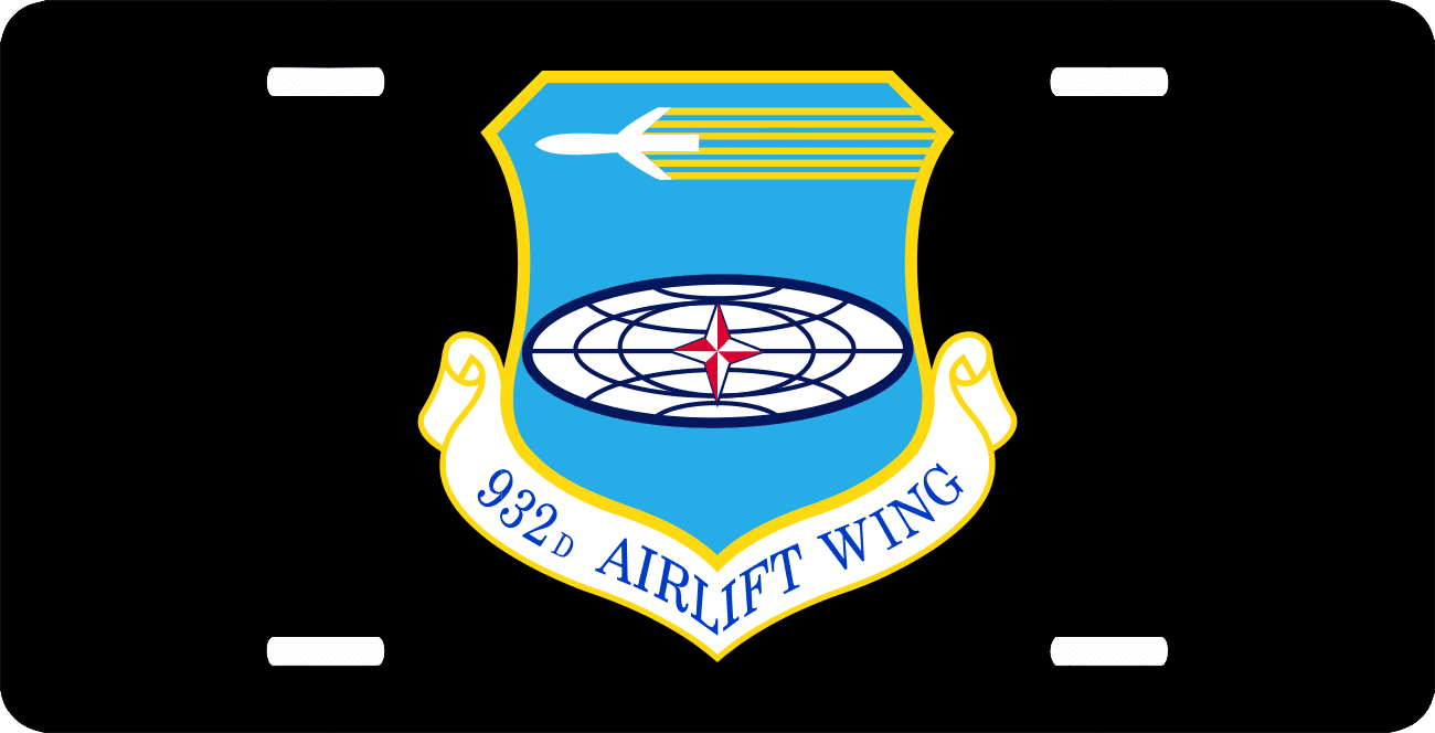 This U.S. Air Force 932nd Airlift Wing License Plate is made from heavy gauge aluminum and has a baked enamel finish to last for many years of use. Each plate measures 5 15/16" x 11 15/16". This license plate would make a wonderful addition to your collection or a great gift.