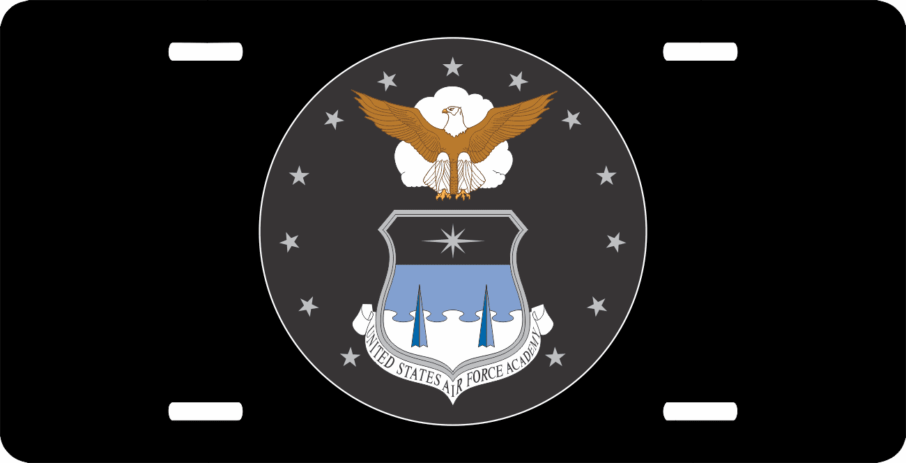 This U.S. Air Force Academy Circle License Plate is made from heavy gauge aluminum and has a baked enamel finish to last for many years of use. Each plate measures 5 15/16" x 11 15/16". This license plate would make a wonderful addition to your collection or a great gift.