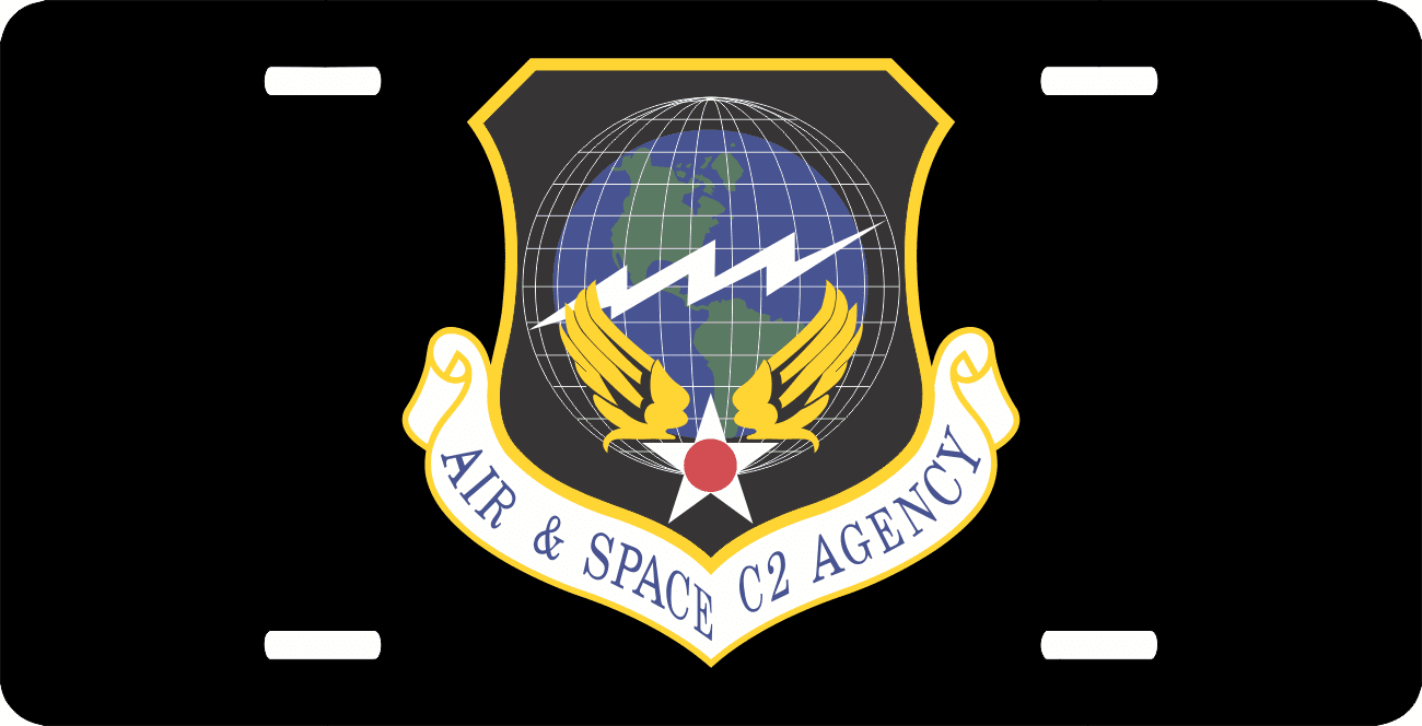 This U.S. Air Force Air And Space C2 Agency License Plate is made from heavy gauge aluminum and has a baked enamel finish to last for many years of use. Each plate measures 5 15/16" x 11 15/16". This license plate would make a wonderful addition to your collection or a great gift.
