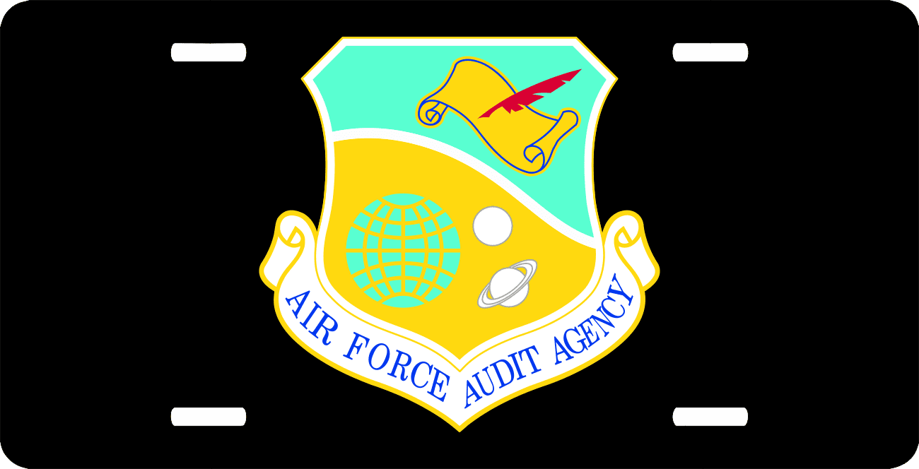 This U.S. Air Force Audit Agency License Plate is made from heavy gauge aluminum and has a baked enamel finish to last for many years of use. Each plate measures 5 15/16" x 11 15/16". This license plate would make a wonderful addition to your collection or a great gift.