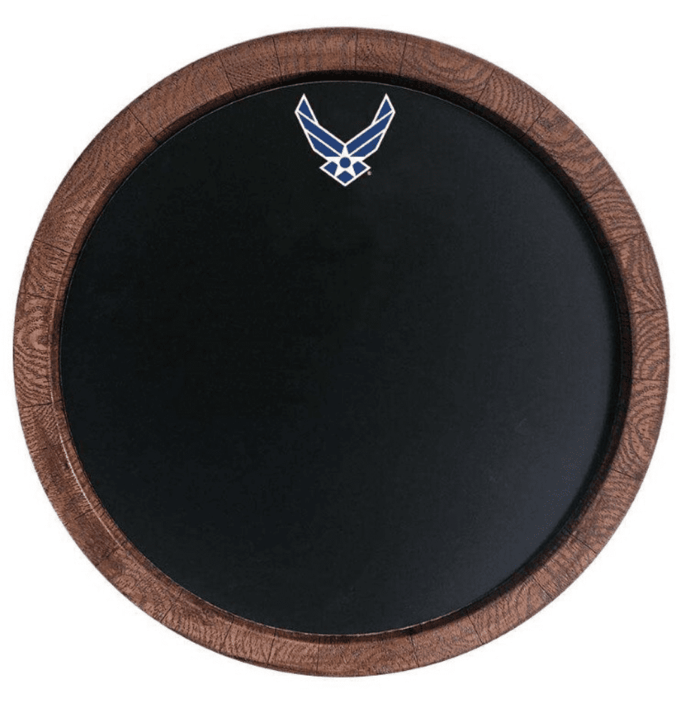 Bring the rustic look indoors with our United States Air Force 20" Barrel Top chalkboard. Showcase your team spirit with this great piece that also functions as a real chalkboard to write on and leave messages for your family and guests. This product is injection molded and hand stained to give it an authentic wood look. This is an officially licensed product of the US Air Force and made in the USA.FEATURES