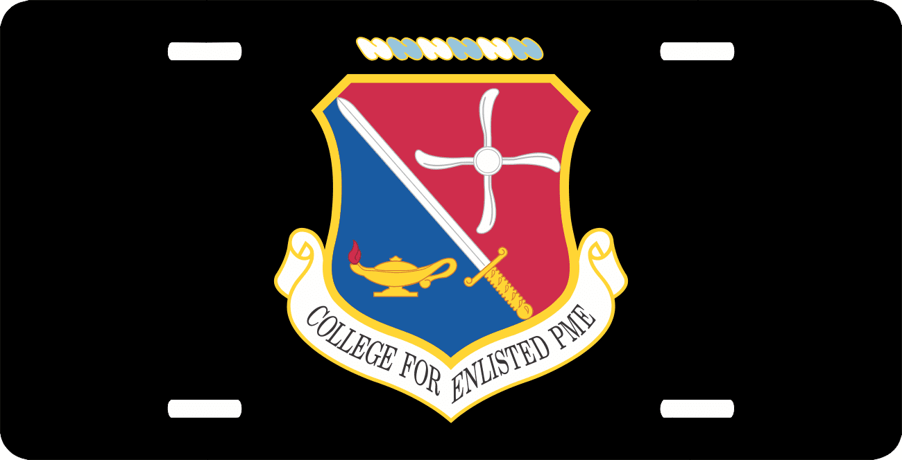 This U.S. Air Force College For Enlisted PME License Plate is made from heavy gauge aluminum and has a baked enamel finish to last for many years of use. Each plate measures 5 15/16" x 11 15/16". This license plate would make a wonderful addition to your collection or a great gift.