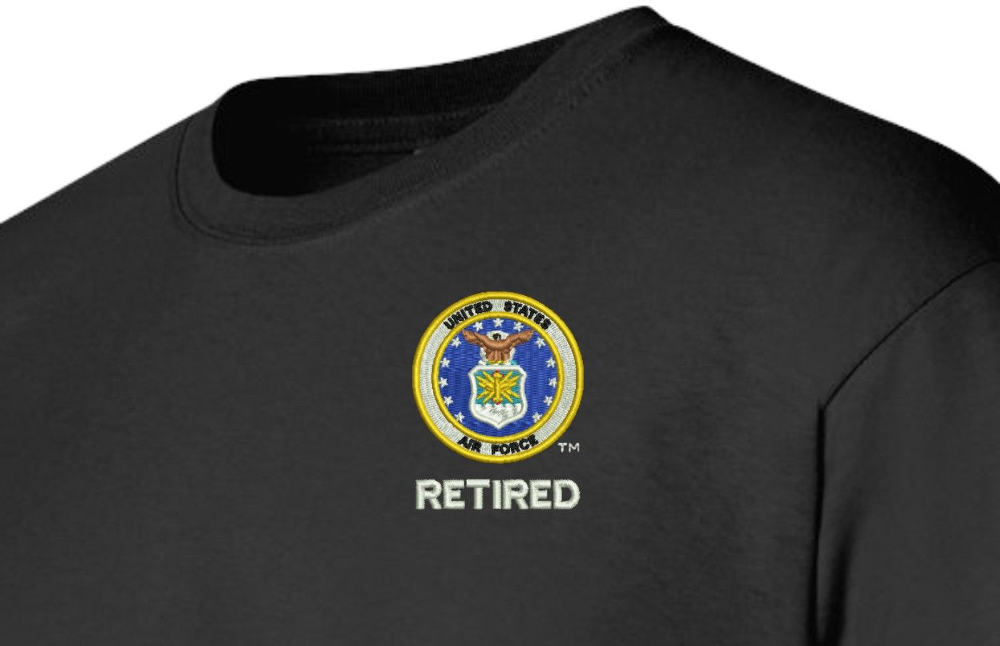 Note: Some of the Color Options pictured may not be available. Available Color Options are listed on the drop down menu above.MilitaryBest is expanding its line of apparel with this fine U.S. Air Force Retired T-Shirt. This Gildan brand short sleeve t-shirt is made using a 6 oz pre-shrunk 100% cotton material. This U.S. Air Force Retired T-Shirt will make an excellent addition to your wardrobe or a fine gift. This U.S. Air Force Retired T-Shirt is custom embroidered at our facilities in Scottsboro, AL when you place your order.
