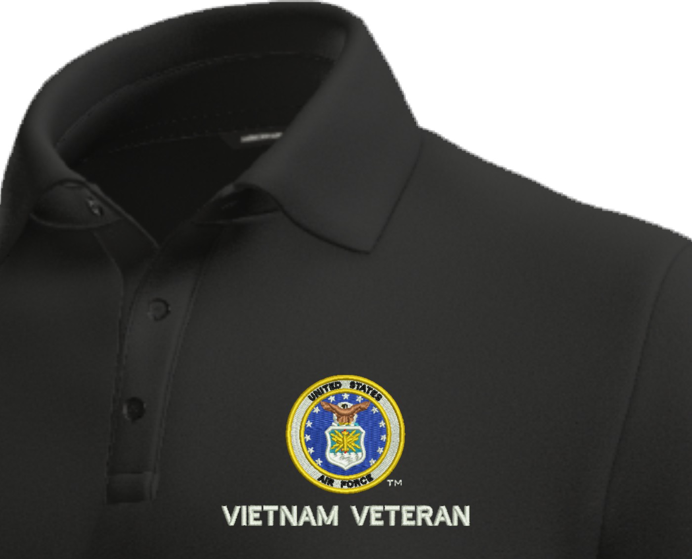 MilitaryBest has expanded its line of apparel with this custom embroidered U.S. Air Force Vietnam Veteran Moisture Wicking Polo. This Polo is made using 50/50 cotton/polyester moisture wicking material. This U.S. Air Force Vietnam Veteran Moisture Wicking Polo will make an excellent addition to your wardrobe, or a great gift. Your satisfaction is guaranteed! Each U.S. Air Force Vietnam Veteran Moisture Wicking Polo is directly embroidered at our facilities in Scottsboro, AL.